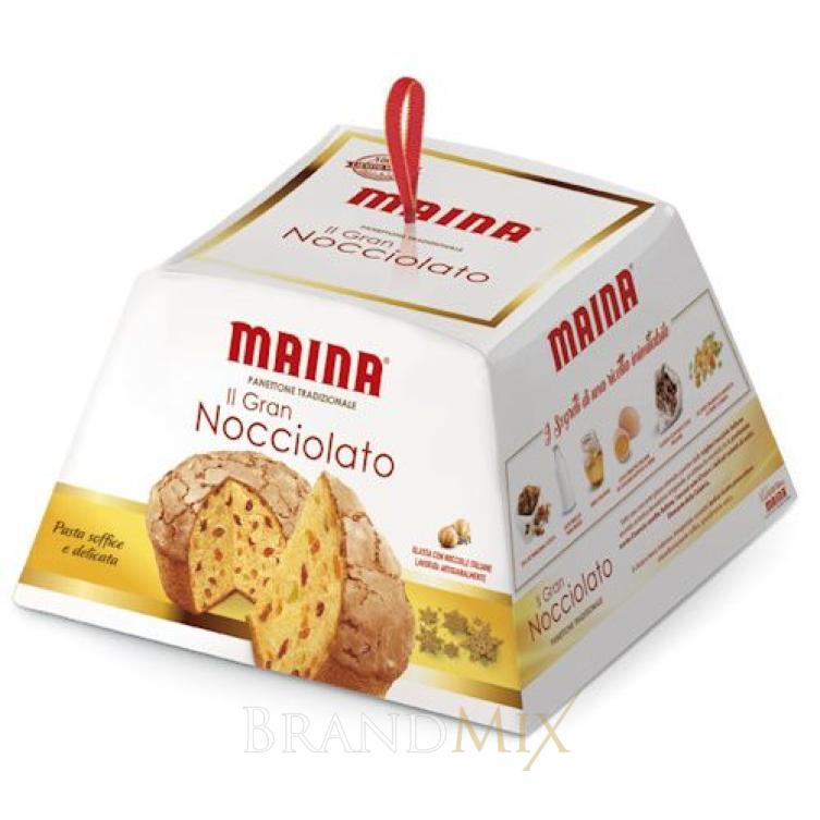 Olasz panettone, puha tészta, több mint 2 napig természetes úton kelesztve tiszta anyaélesztővel, illatos kandírozott narancshéjjal, kalábriai cédrussal, ropogós mázzal bevonva, kézzel készítve a legjobb olasz egész mogyoróból , és a hagyományoknak megfe