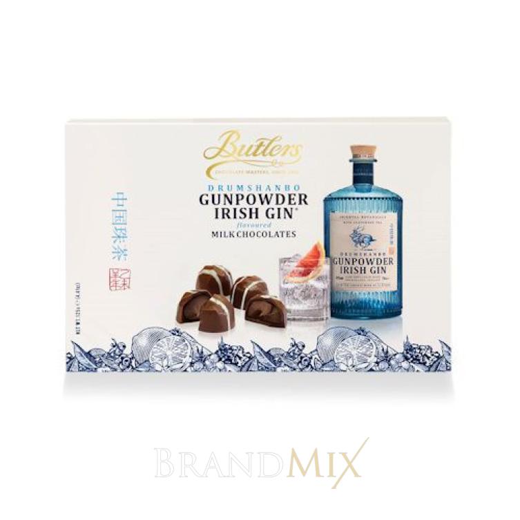 Butlers Ír alkoholos, Gin-t tartalmazó praliné. A legfinomabb tejcsokoládéból készült. Papírdobozba csomagolva./