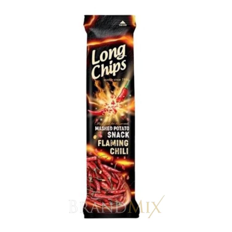 Lettországból származó burgonyachips csípős chili ízesítéssel, dekoratív fóliában.