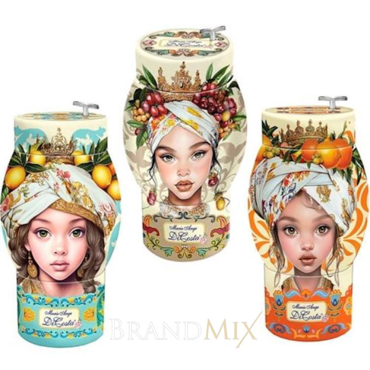 Olasz DiCosta tejcsokoládé praliné, tejkrémmel és kakaókrémmel töltve./ Zenélő fémdobozban.