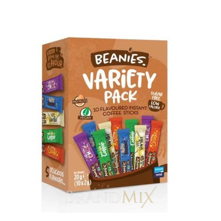 A Beanies kávék nem tartalmaznak cukrot, sem hozzáadott adalékanyagot, vagy ízfokozót. 10X2g különböző ízesítésü instant kávé.