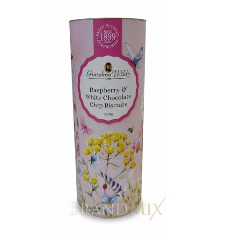 GMW angol keksz, a fanyar málna és a krémes fehér csokoládé kombinációjával, papírhengerben.