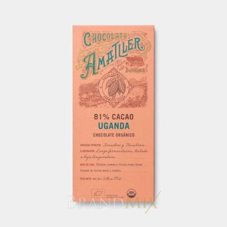 Amatler Spanyol táblás csokoládé, az Ugandában termesztett kakaóbab világos pörkölésű, meglepő a trópusi és az aszalt gyümölcsök ízeinek kombinációjával, enyhén fanyar, a szájban édes.