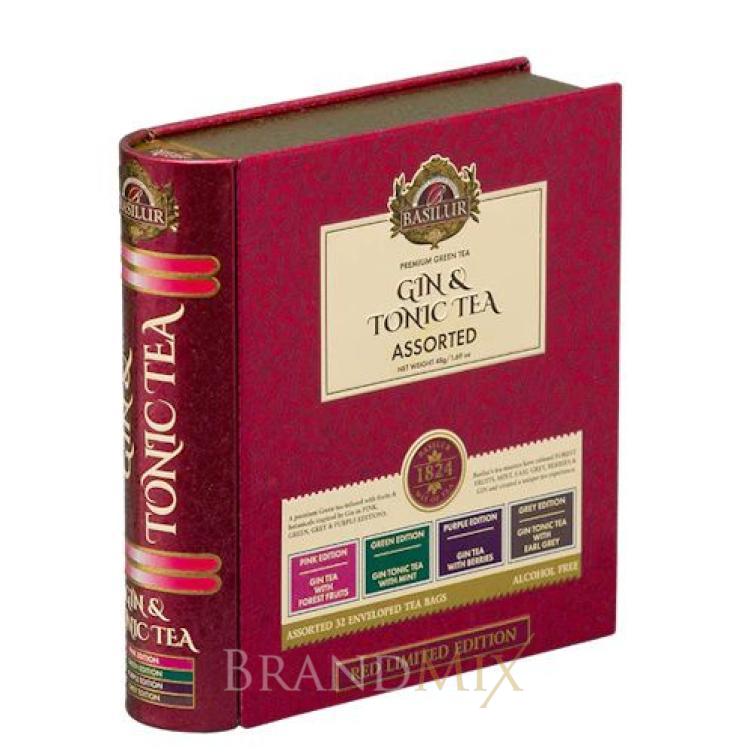 A Basilur Gin Tea" kollekció rendkívüli élményt kínál, A zöld tea tökéletesen keveredik a gin és a tonik eszenciájával. Négy különböző ízben /erdei gyümölcs, bogyós gyümölcs, mentol, Earl Grey/. Könyv formájú fémdobozban."