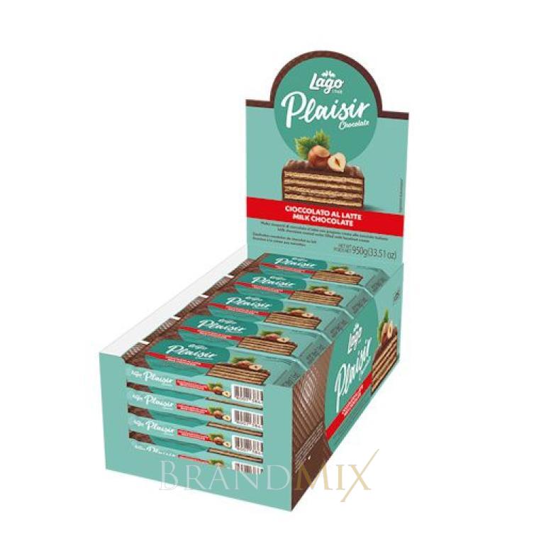 A Lago Plaisir egy Olasz nápolyi, mogyorós krémmel töltve, finom tejcsokoládéval bevonva.